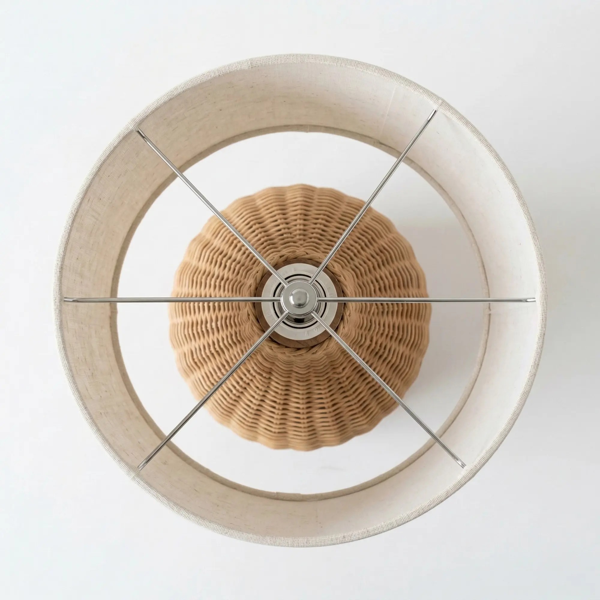 • Elegant Textural Contrast: Topped with a light beige linen-style fabric drum shade that beautifully complements the woven base, adding a cozy, aesthetic touch to your decor.